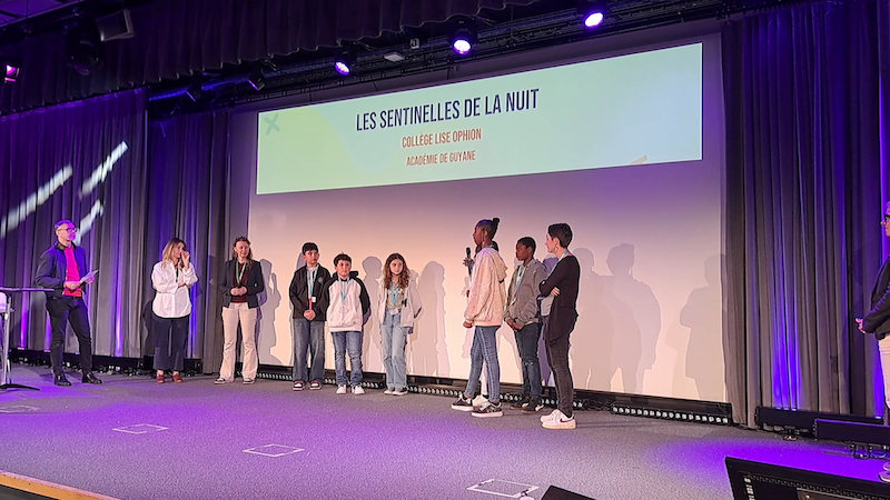 Les élèves du collège Lise Ophion étaient accompagnés par leur enseignante, Mme Boisson, pour soutenir leur projet "Les Sentinelles de la nuit" :